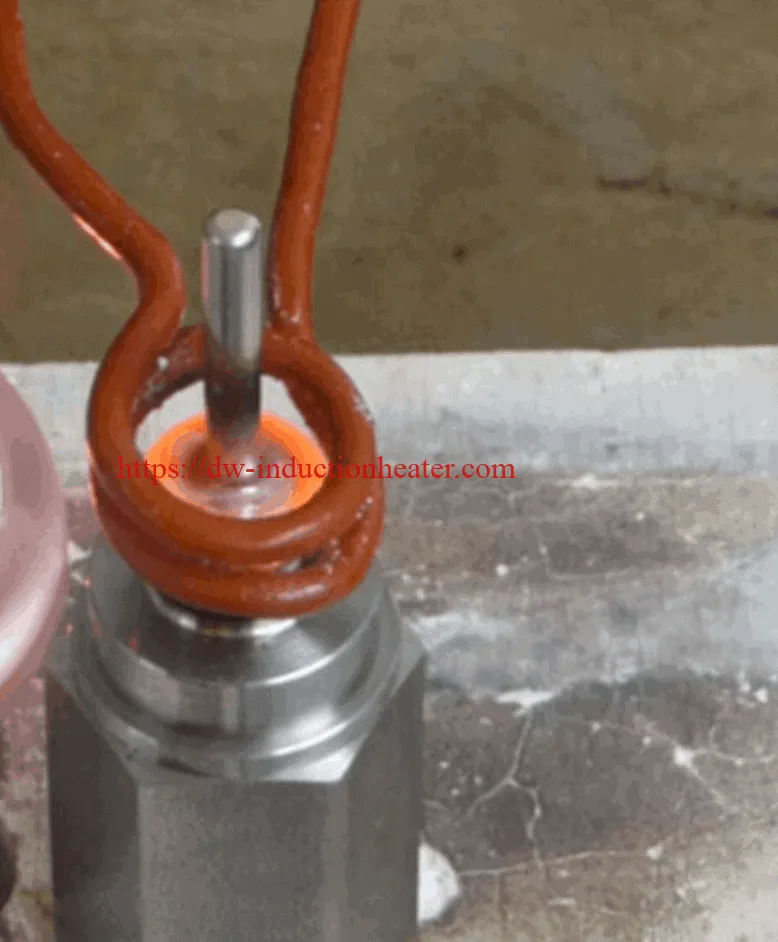 High frequency induction brazing stainless steel tube to stainless steel fitting with DW-HF-25kw-A induction heater.